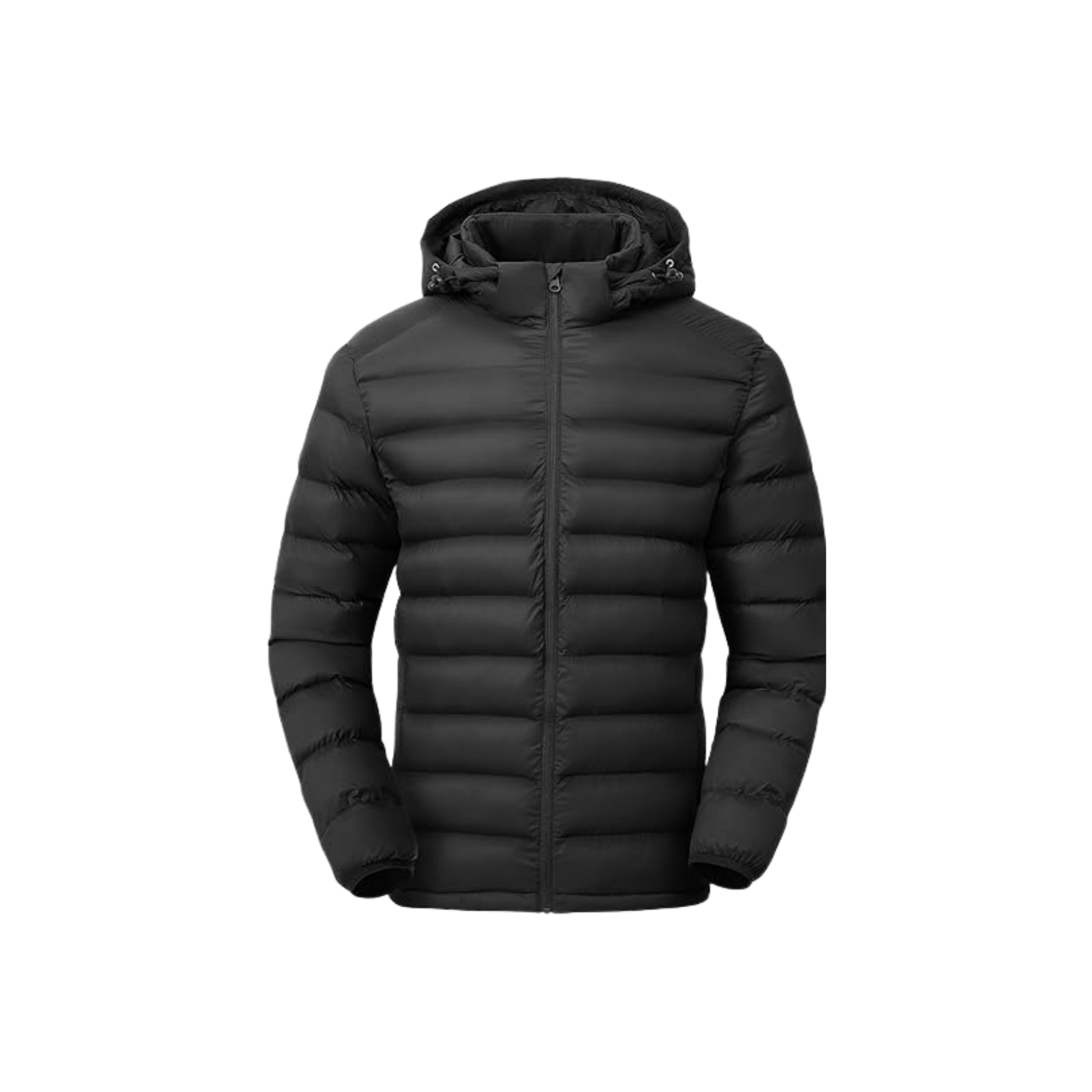 This men's lightweight puffer jacket combines cotton insulation with precise quilting for superior warmth without bulk. Its water-resistant shell repels light rain while elastic cuffs and hems minimize wind intrusion. The detachable hood, featuring adjustable buckles and Velcro, ensures effective protection and accommodates winter accessories comfortably. Four convenient pockets—including two zippered hand pockets and two spacious inner compartments—offer practical storage. Ideal for casual wear and outdoor activities like hiking, cycling, or camping, this jacket works well as a mid-layer in severe cold or as a standalone outer layer during spring, fall, and milder winter days.